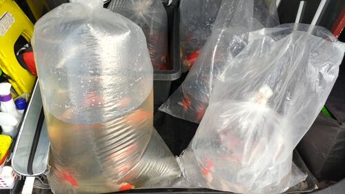 念願のフラワーセンター開催の巻 こんばんは、玉達っちゃんです 6時 起床 朝食 水槽メンテ 玉ちゃんの袋詰め 今日はすくい用タライも準備済みの為、車内で地ベタ積み 販売用も増え、袋数が増える 7時半 出発 天気はまだ良好 予報では、イベント終了時間頃か…